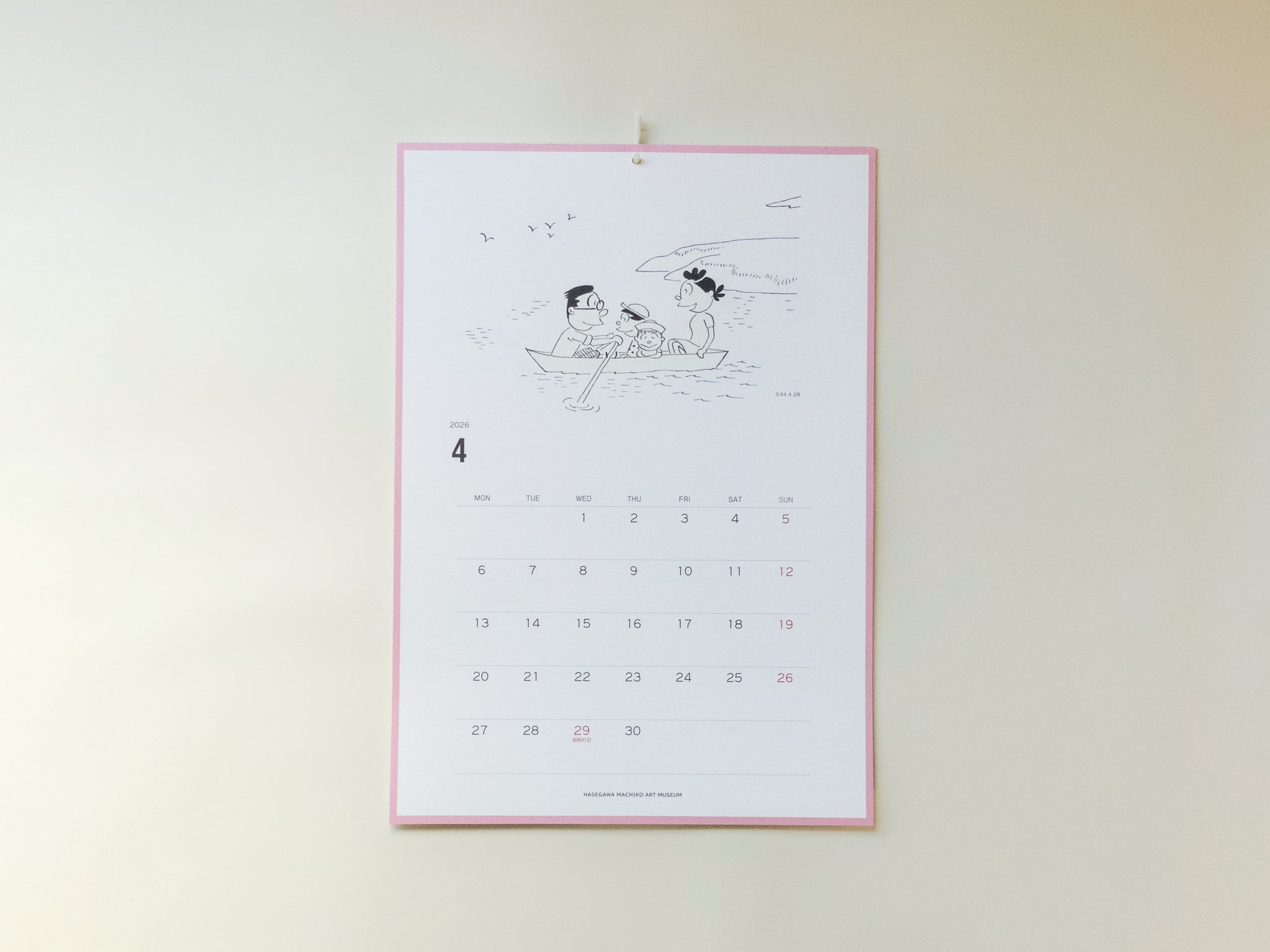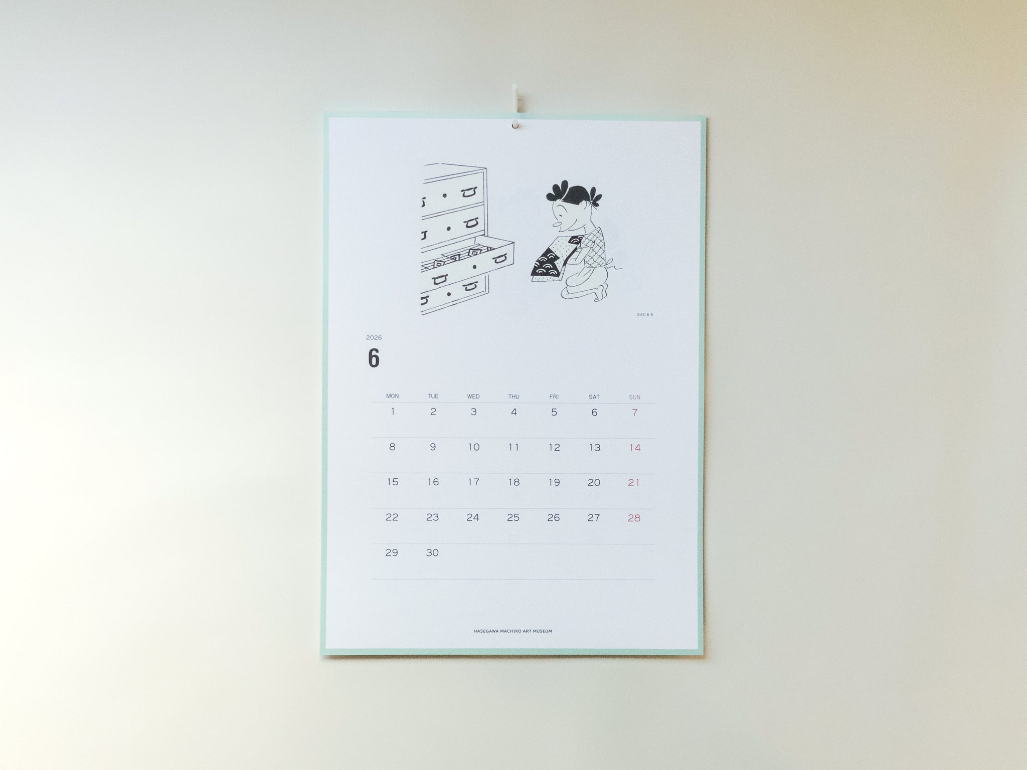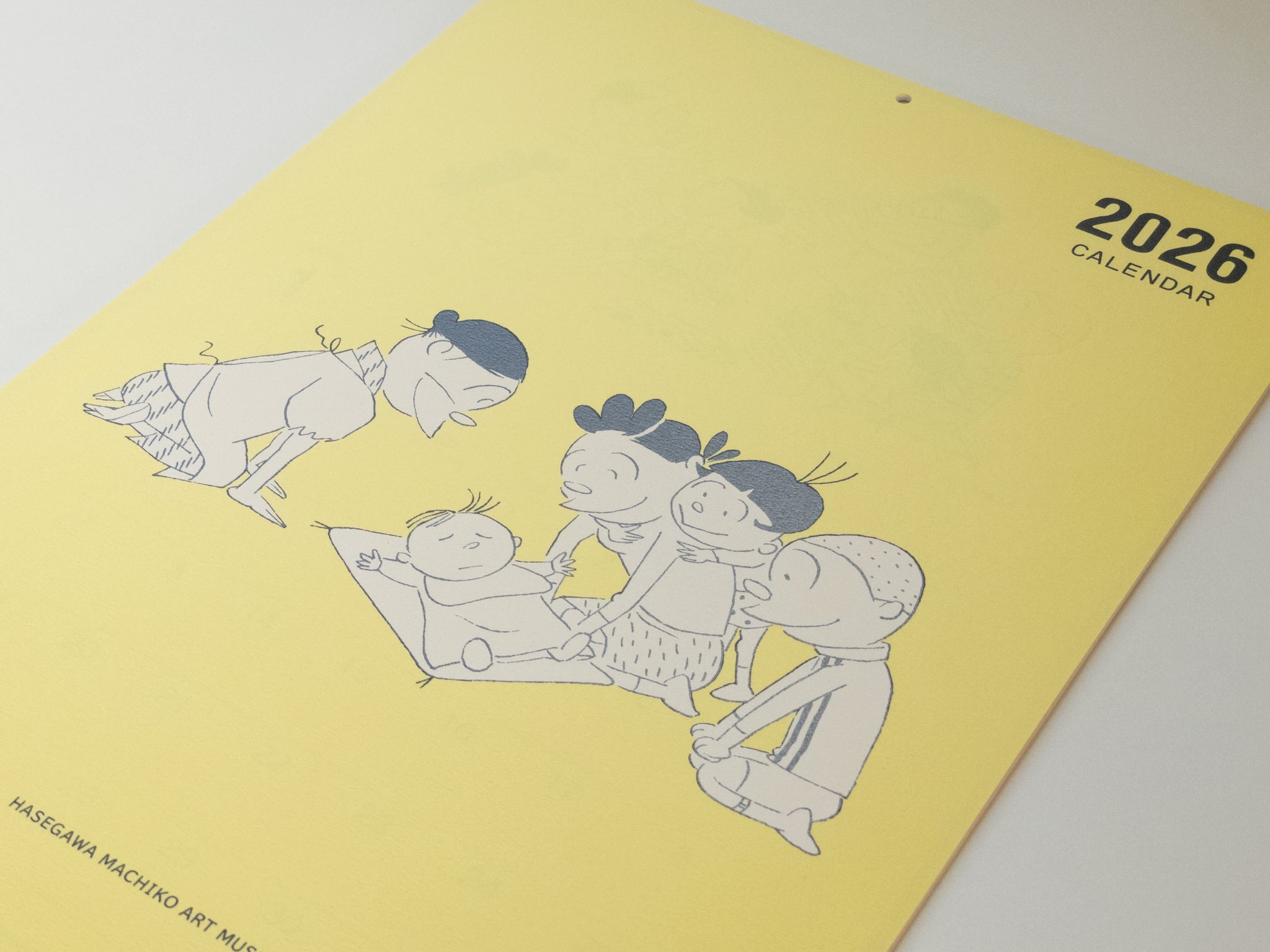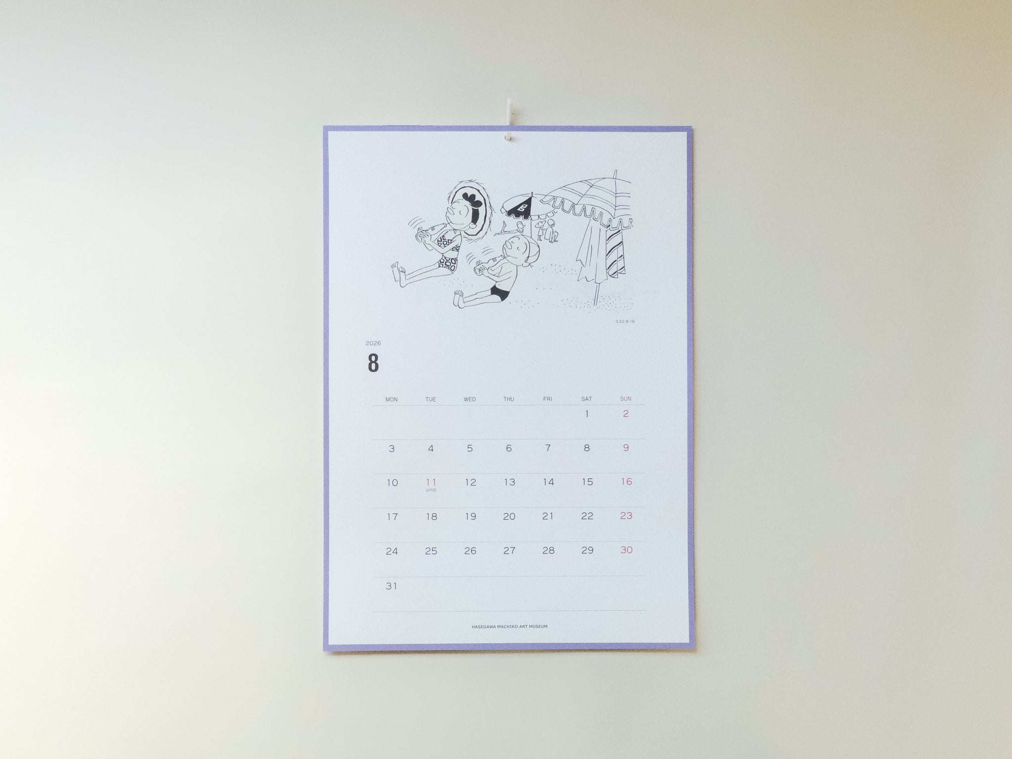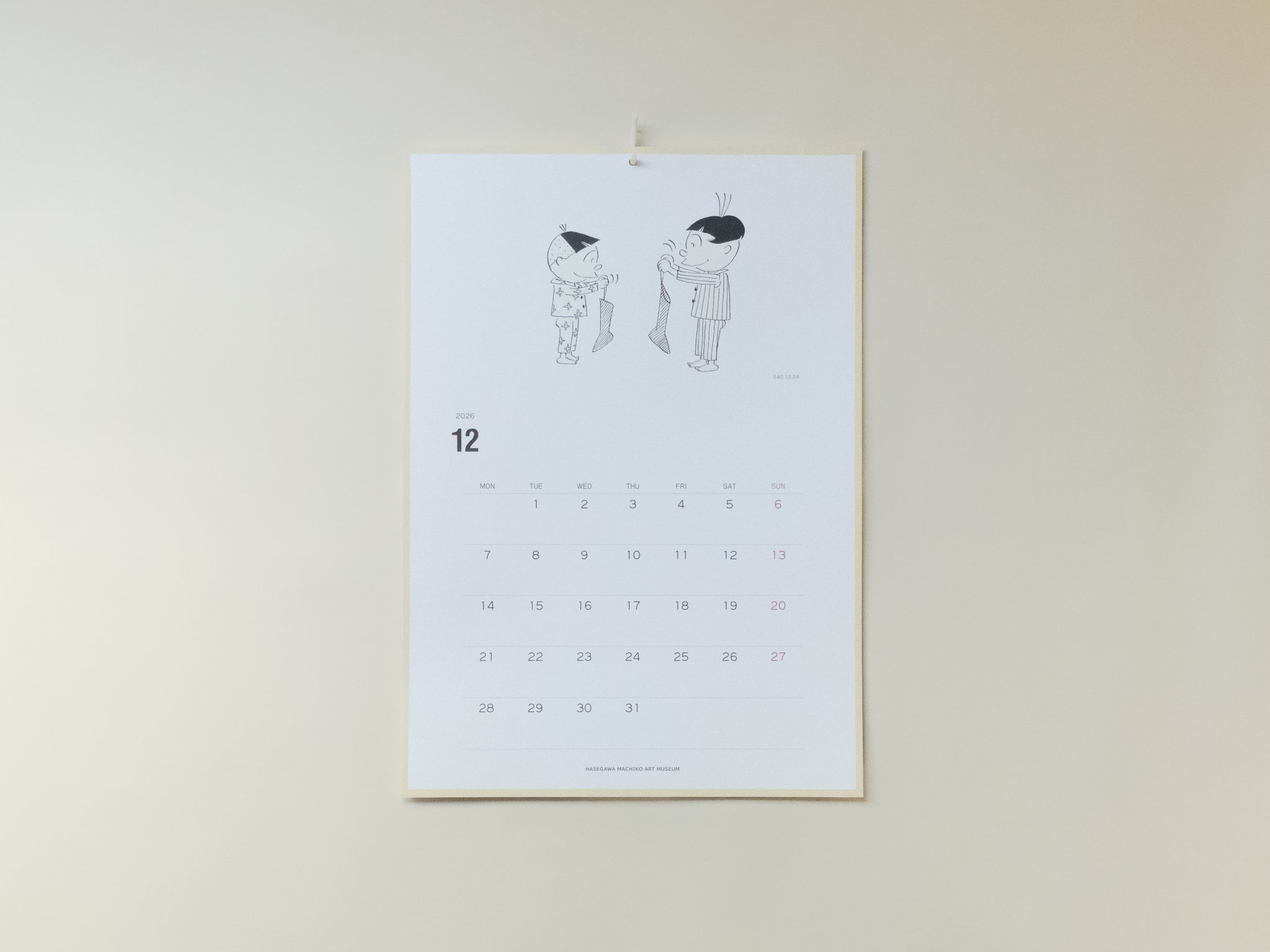 予定が書きこめる壁掛けタイプのカレンダーです。長谷川町子の描くサザエさんの原画を大きく使用してお作りしました。