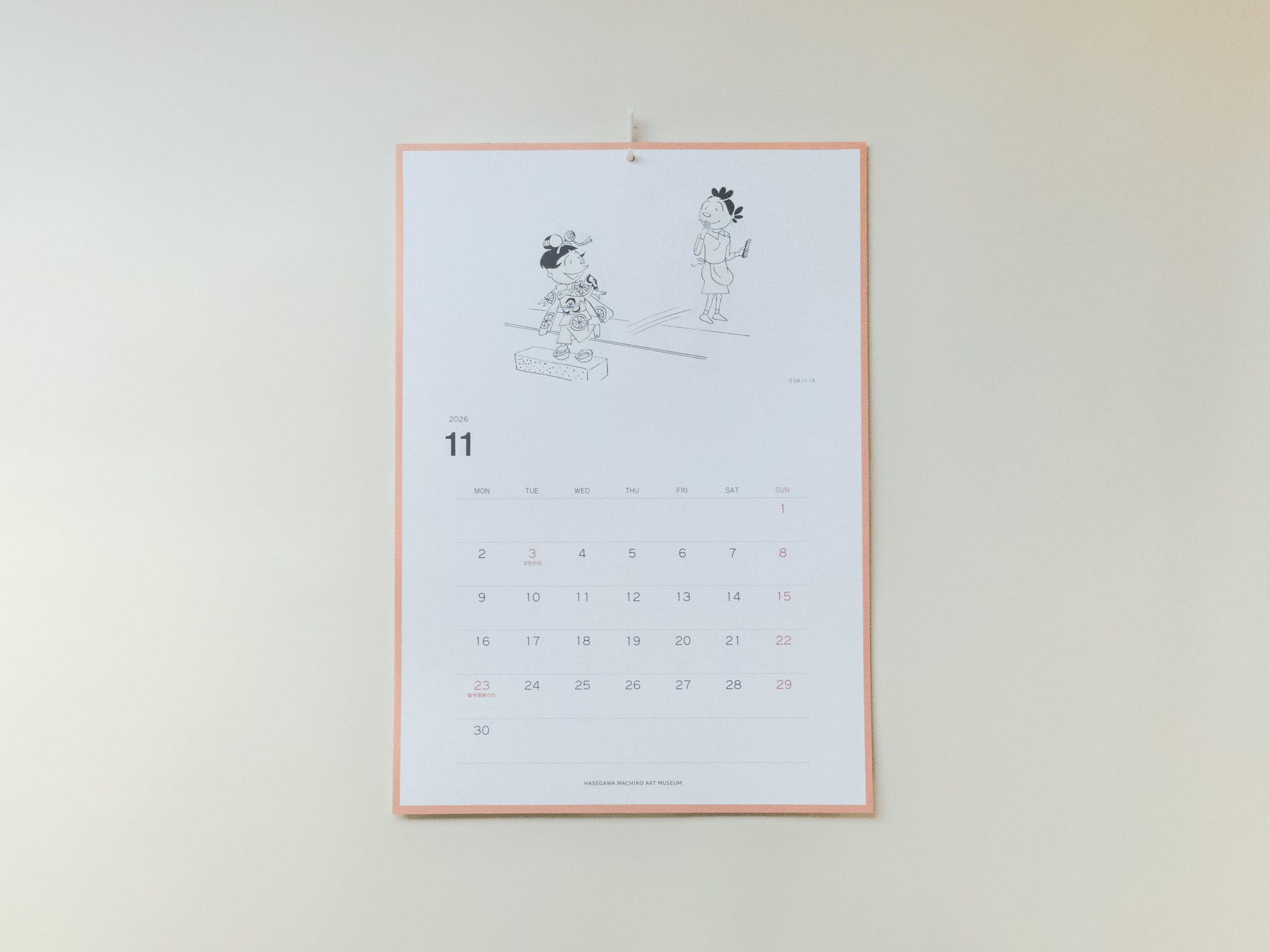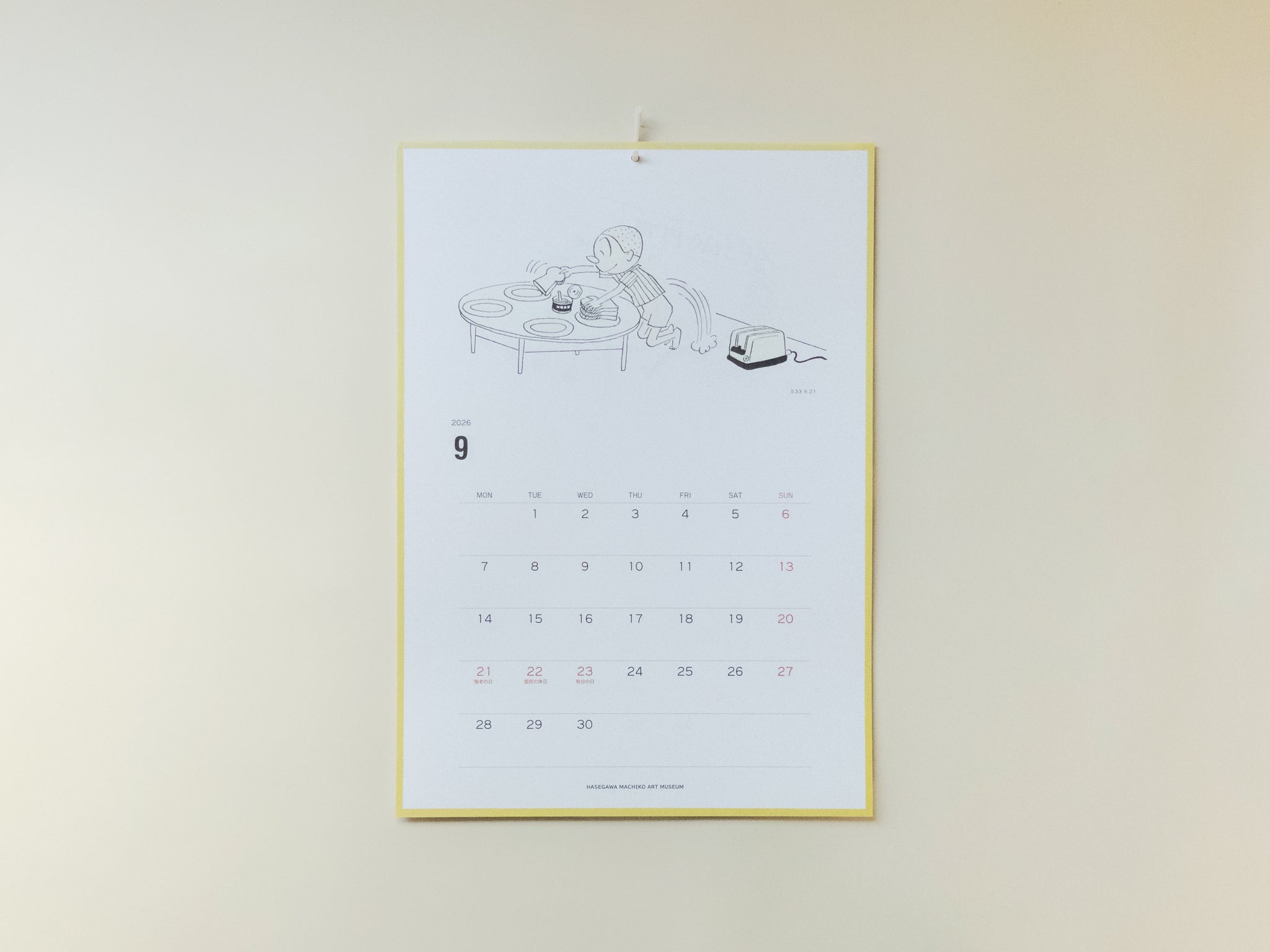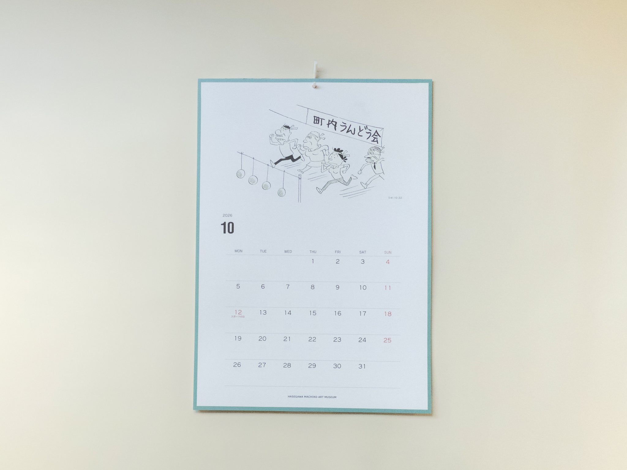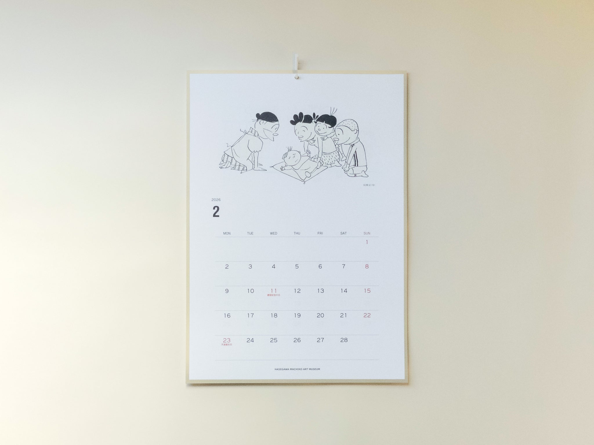 予定が書きこめる壁掛けタイプのカレンダーです。長谷川町子の描くサザエさんの原画を大きく使用してお作りしました。