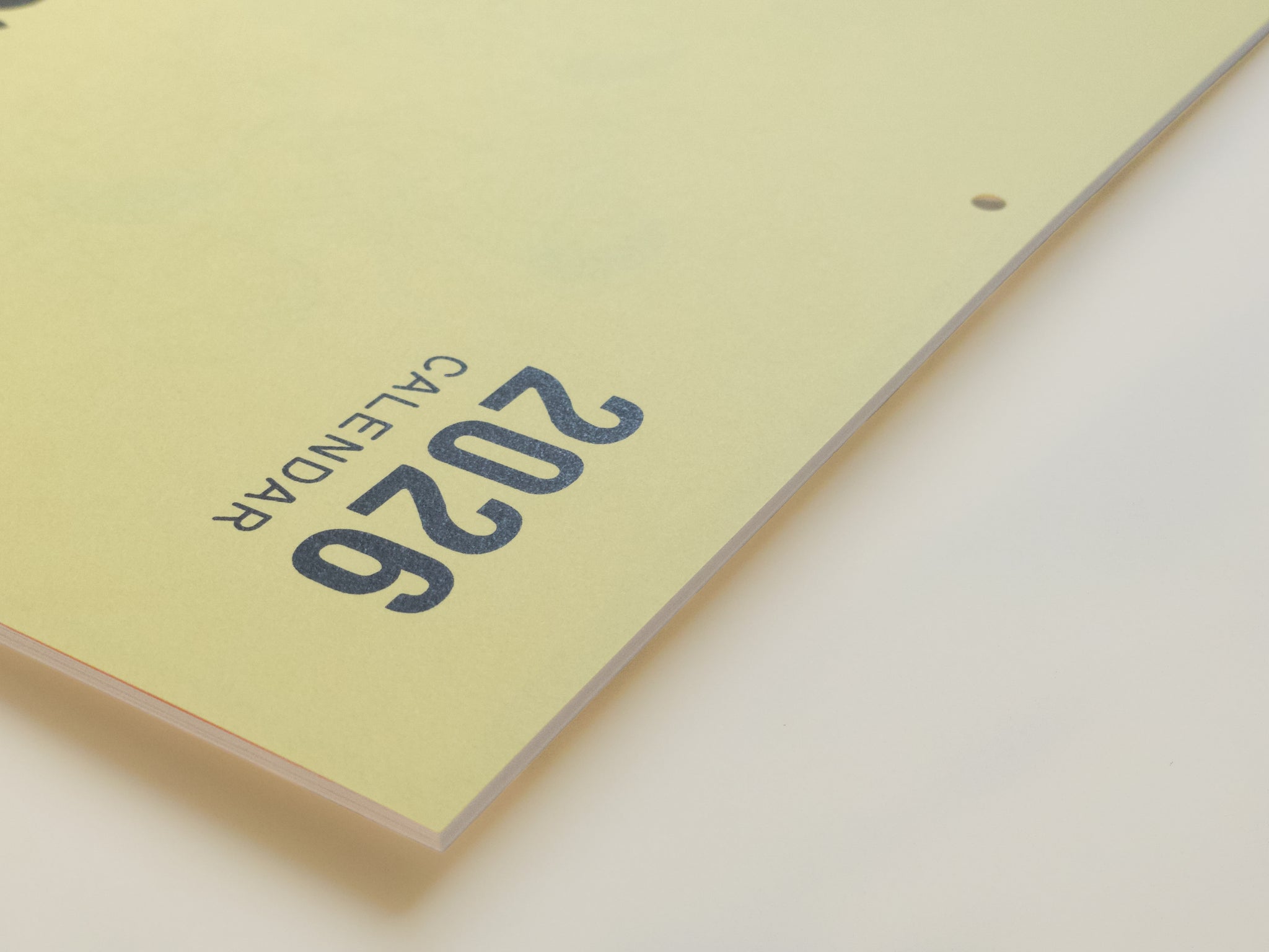 カレンダーを使い始めるときにめくる表紙は、シルクスクリーンプリントで印刷しており、ポスターを飾るように楽しんでいただけます。